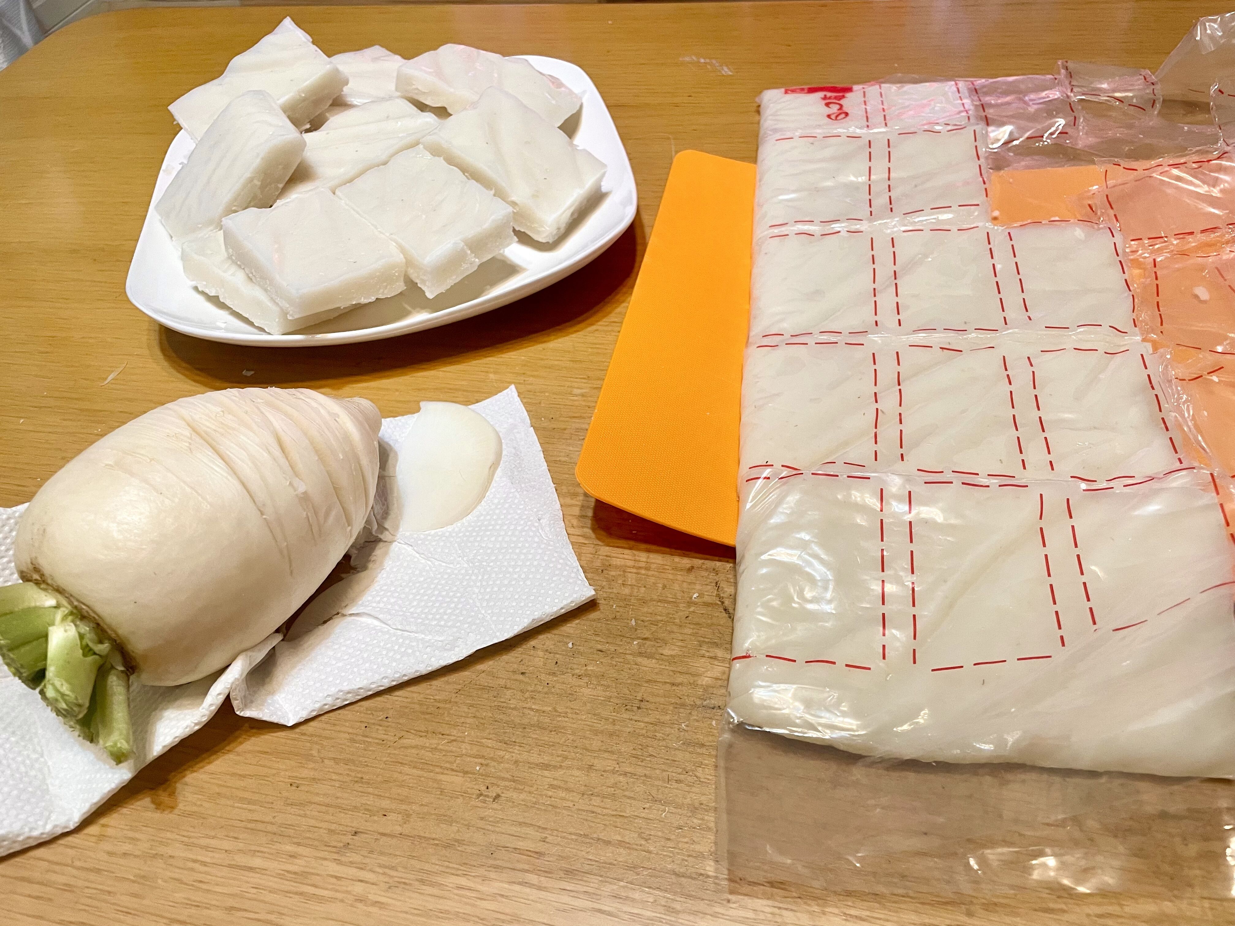 夜はお世話になった農家さんから頂いたのし餅をカット!