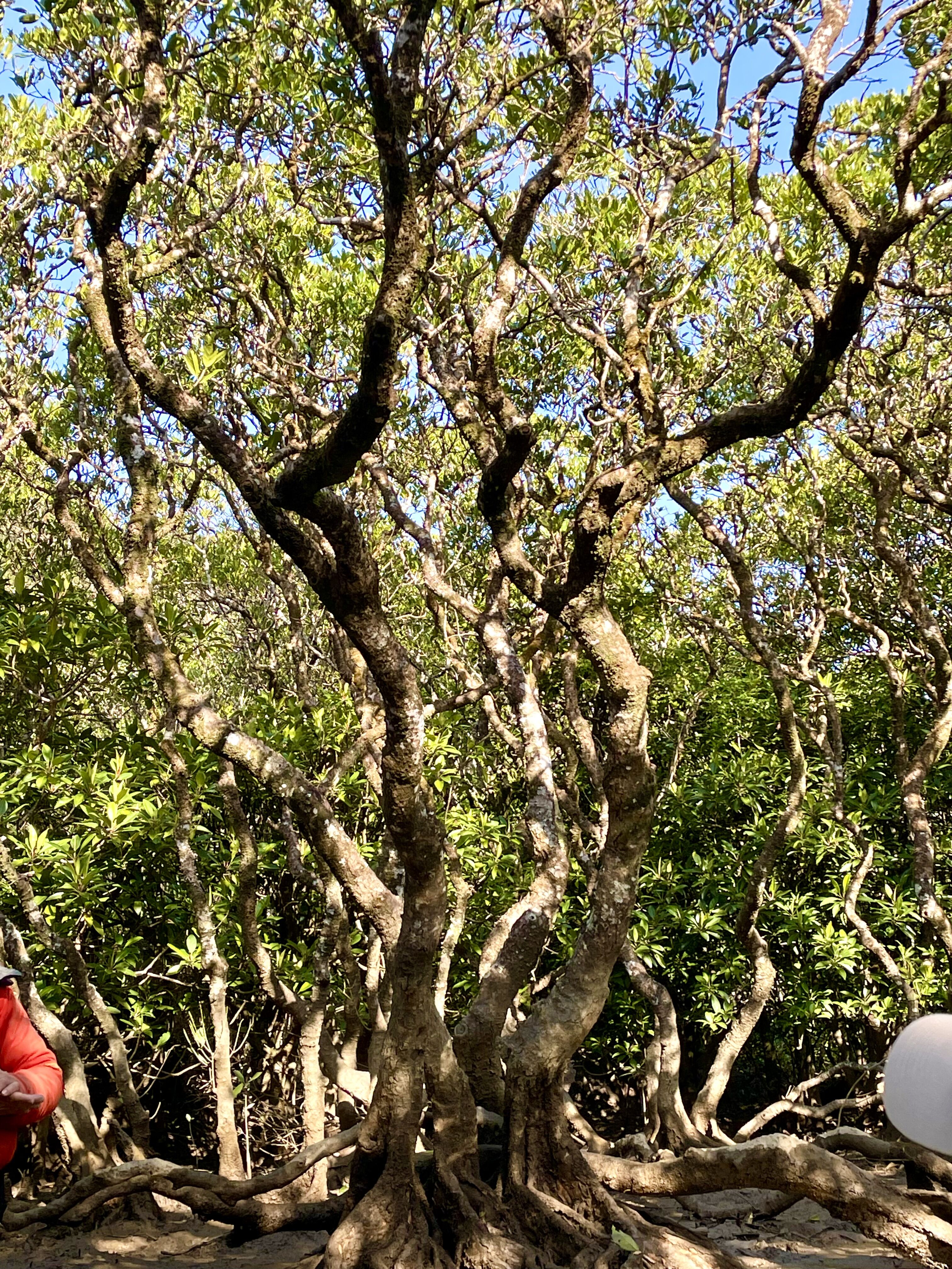 このマングローブの木、白いカビみたいなのがあるんだけど空気が美味しい証拠なんだって